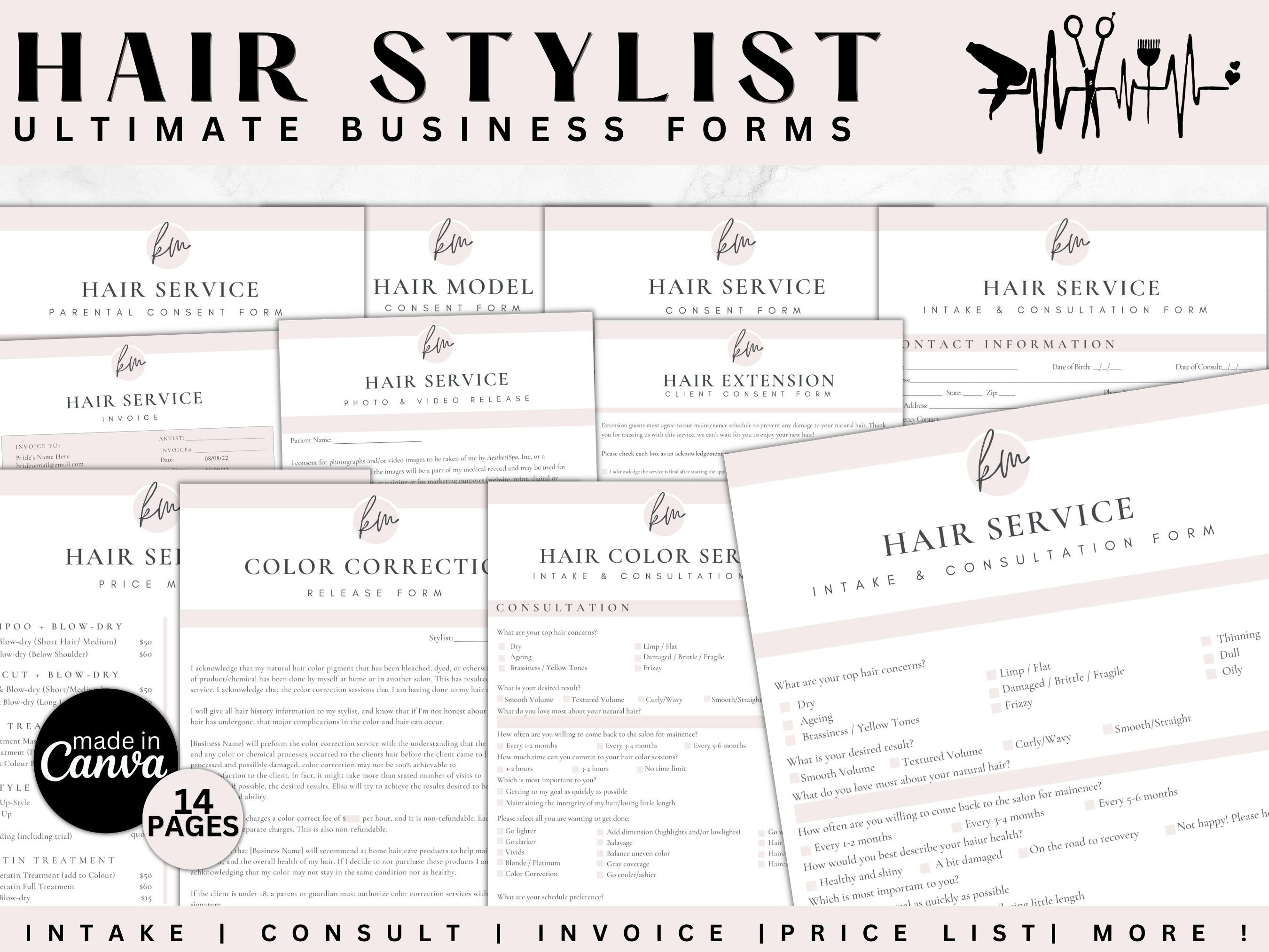 Professional Hair Stylist Client Forms Bundle Color Etsy